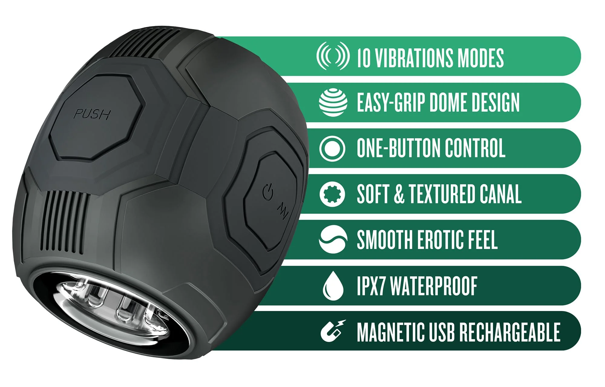 Met een strak en futuristisch design ligt de Dome X comfortabel in de hand. Dankzij de eenvoudig samen te knijpen buitenkant bepaal je zelf de intensiteit van de druk, wat de sensatie versterkt bij elke aanraking. Kies uit 10 krachtige vibratiestanden, waaronder 3 snelheden en 7 patronen, zodat je elke sessie volledig kunt aanpassen aan jouw verlangens. Met slechts één knop schakel je moeiteloos tussen de standen en verken je je grenzen tot je de ultieme climax bereikt.