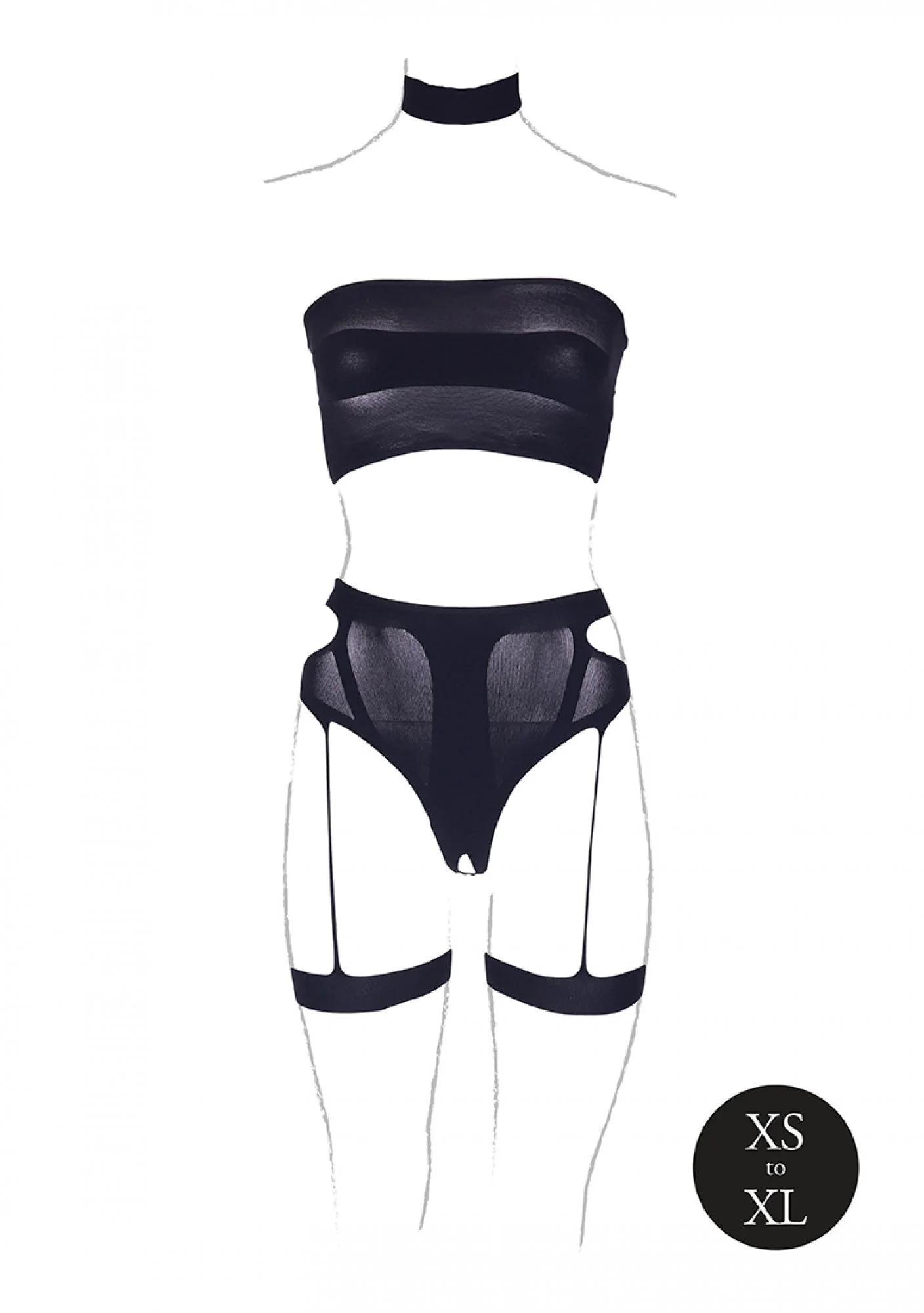 Productinformatie "Driedelige Set Met Jarretels - Zwart"