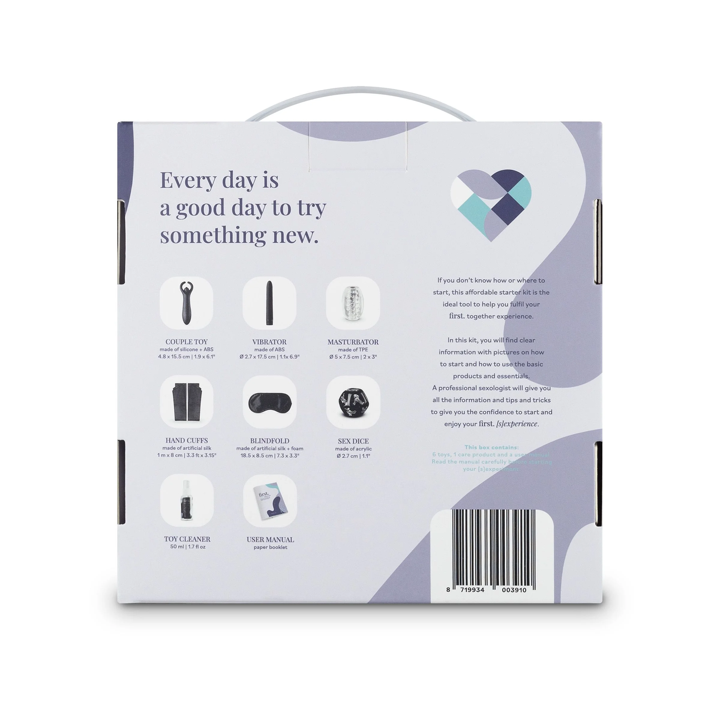 Zorg voor nog meer spanning met de blinddoek en de satijnen boeien of laat de dobbelsteen beslissen met welk standje jullie verder gaan. Verder vind je in de set een handig flesje toycleaner. De uitgebreide en eerlijk geschreven handleiding (Engelstalig) is tot stand gekomen met een ervaren seksuloog en staat boordevol uitleg, do's en dont's en maakt jullie zelfverzekerd genoeg om aan deze nieuwe ontdekkingstocht te beginnen!