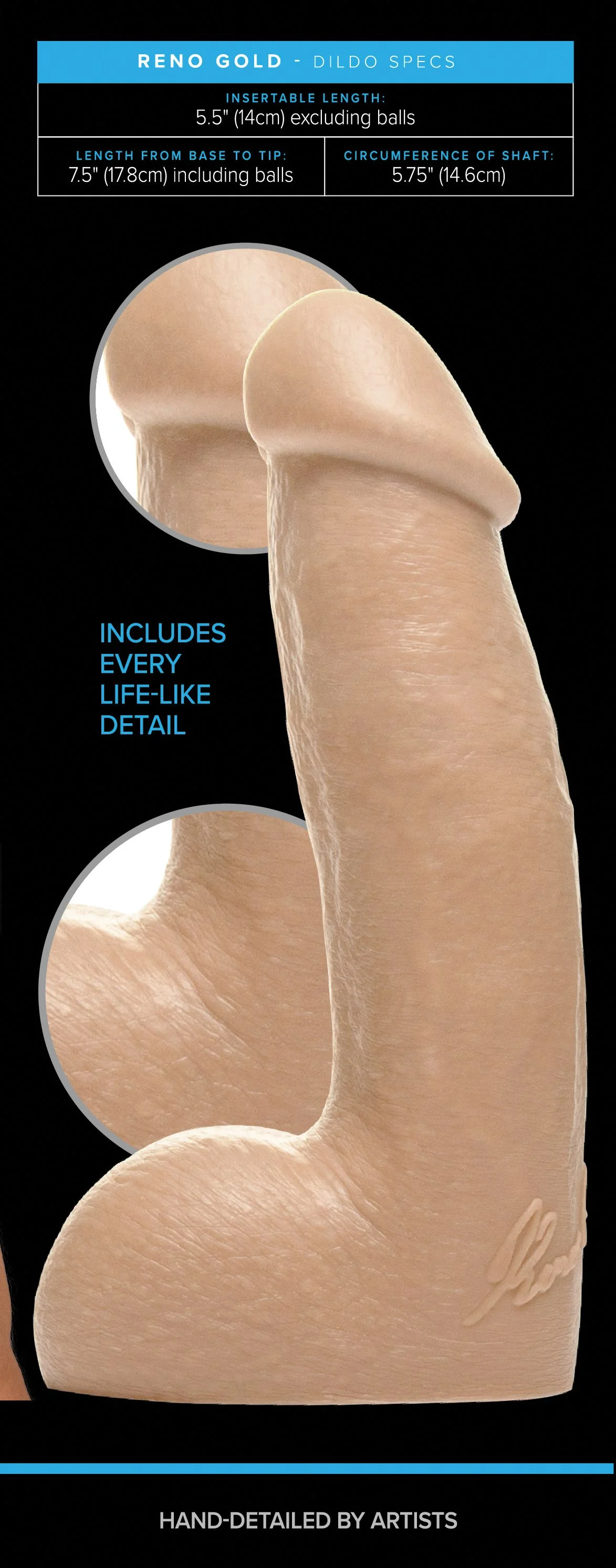 Laat je verwennen door Reno Gold, een heerlijke dildo die gemodelleerd is naar de bekende pornoster. De Fleshjack Boys serie staat bekend om zijn realistische vormgeving. De dildo is gemaakt van SuperSkin, een lichaamsveilig siliconen dat enorm zacht en comfortabel aanvoelt. Groot voordeel is dat dit materiaal snel op temperatuur is. Deze dildo heeft een harde kern zodat hij ook goed geschikt is om als voorbinddildo te gebruiken. Dankzij de realistische eikel, geaderde schacht en balzak kun je genieten van een levensechte ervaring.