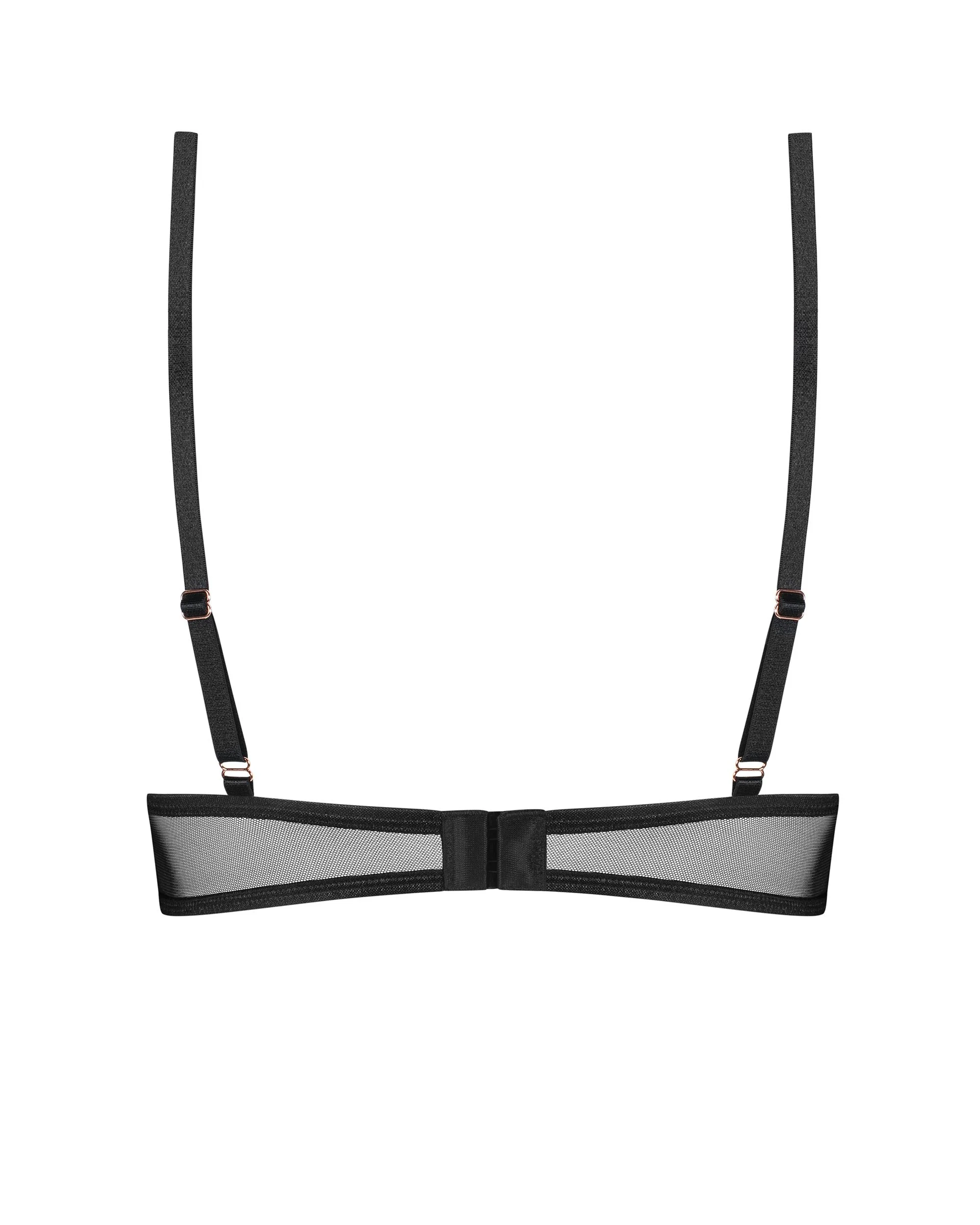 De BH beschikt over een meertraps sluiting en verstelbare bandjes, waardoor een perfecte pasvorm gegarandeerd is. De rosé gouden accessoires voegen een vleugje luxe toe, terwijl de beugels in de cups extra ondersteuning bieden. Gemaakt van sterk elastische stof, biedt deze BH zowel comfort als een sensuele uitstraling.