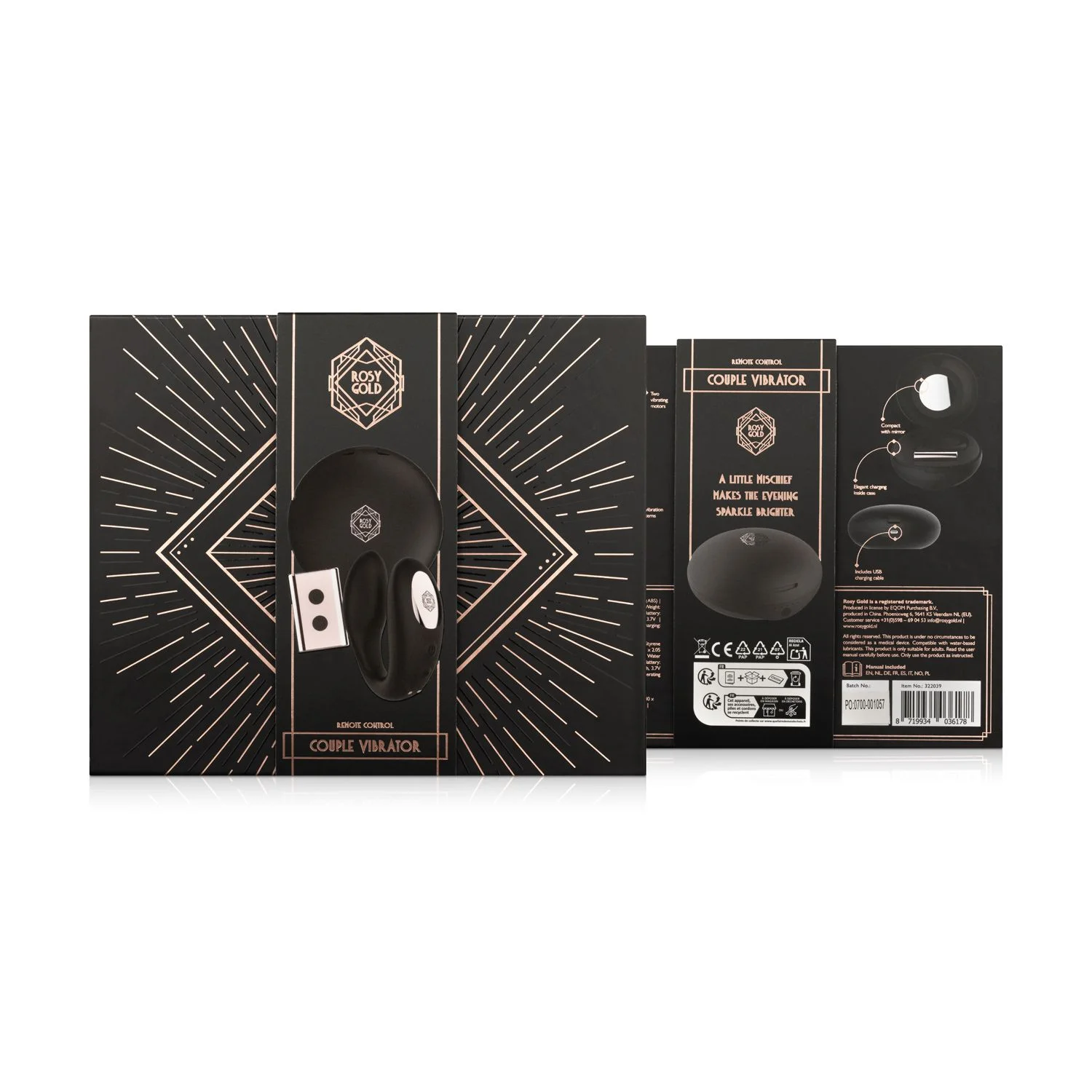 Productinformatie "Rosy Gold – C-Shape Vibrator met Luxe Oplaadcase – Zwart"