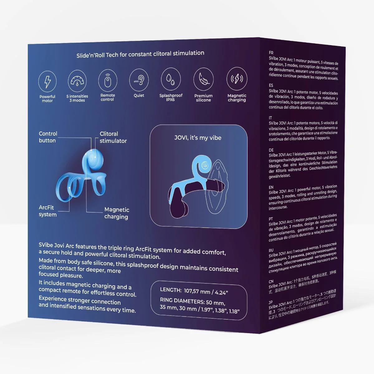 De SVibe Jovi Arc is ontworpen voor koppels die op zoek zijn naar meer verbinding, comfort en gedeelde sensaties. Door de combinatie van ergonomische ondersteuning en gerichte stimulatie nodigt deze koppelring uit tot een intieme ervaring waarin timing, gevoel en samenspel centraal staan.