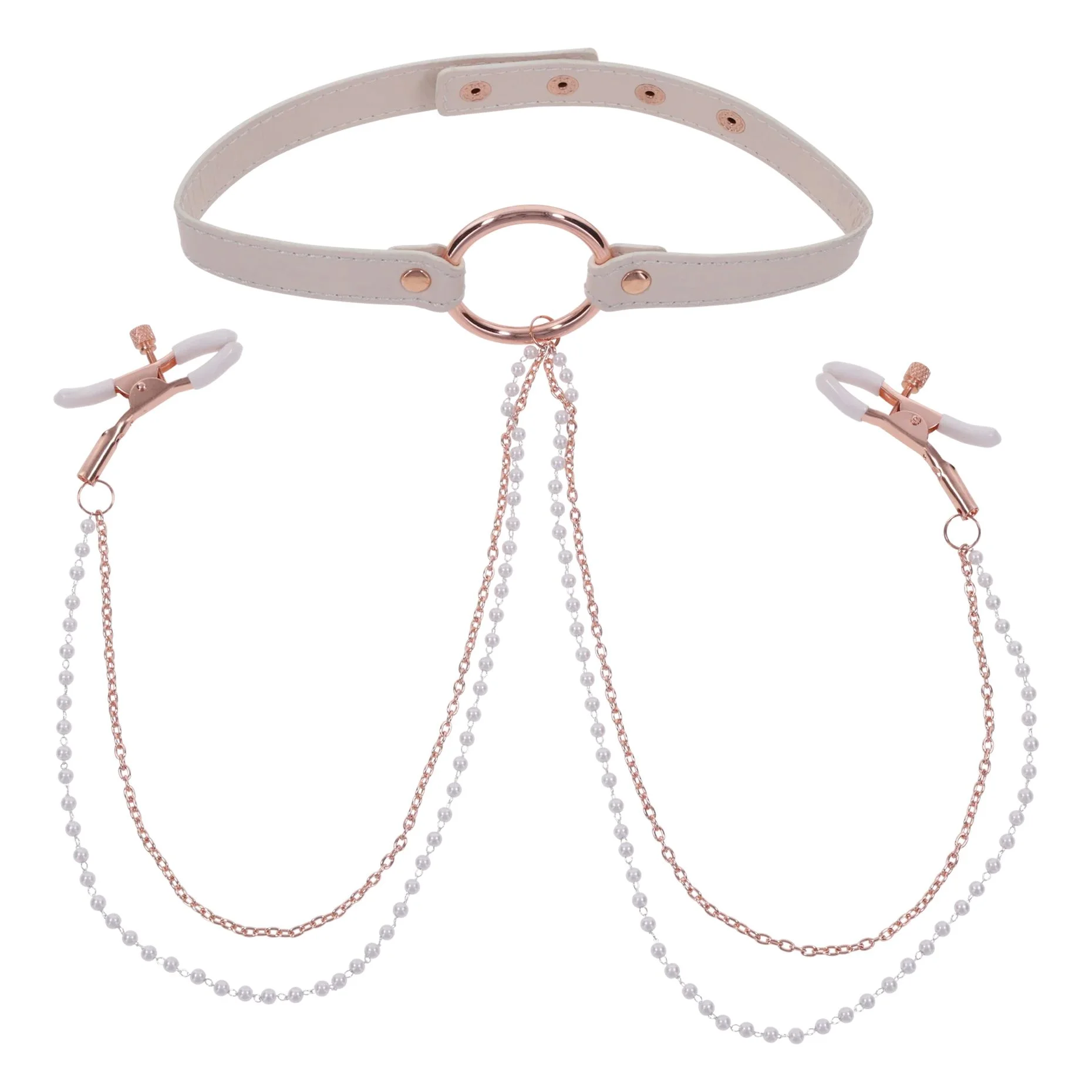 Sportsheets – S&M Peaches ‘n CreaMe Halsband met Tepelklemmen – Cream