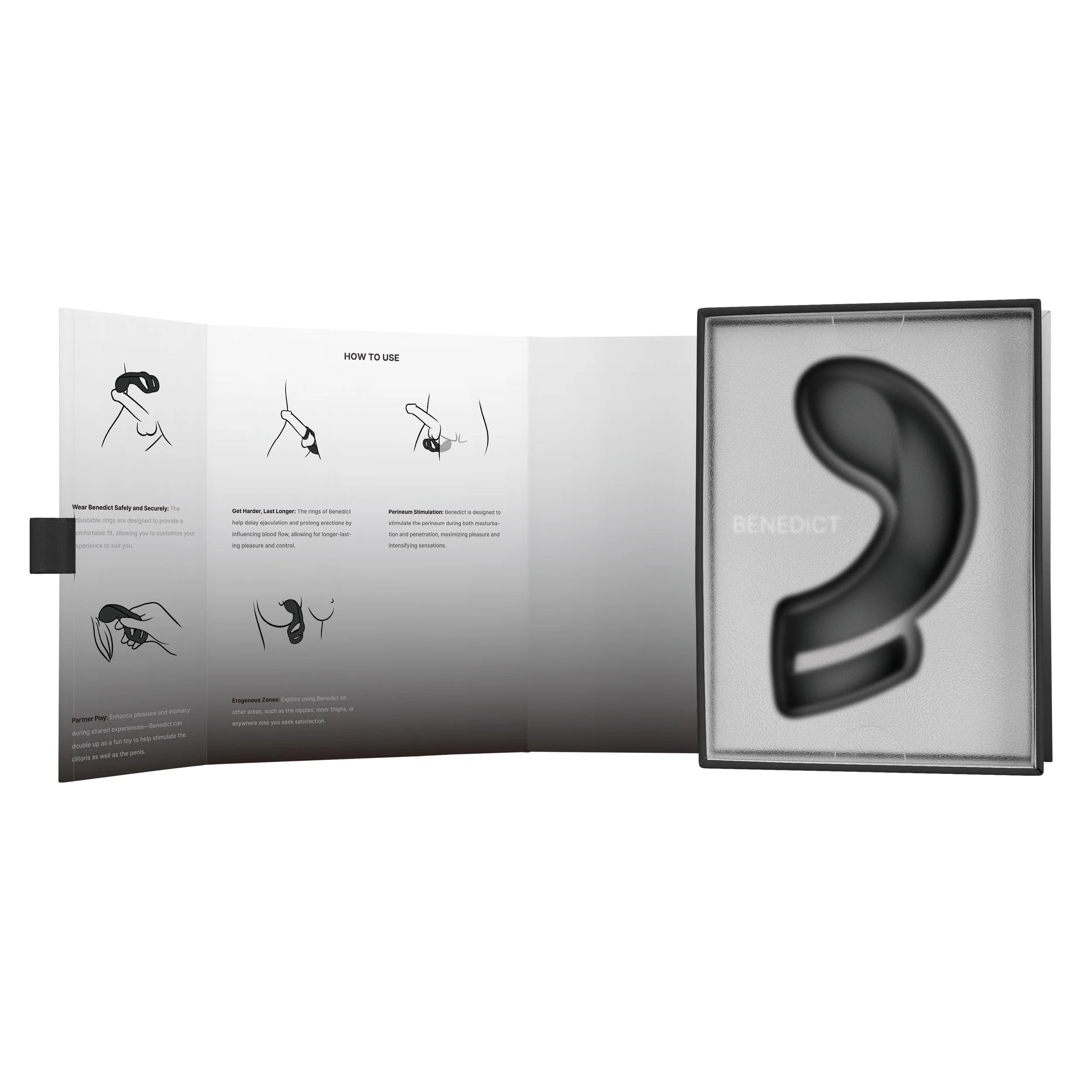 Met vijf verschillende vibratiestanden kun je zelf ontdekken wat jou het meeste plezier bezorgt. Ervaar plezier op jouw manier en laat Benedict je meenemen naar nieuwe hoogtes van genot.