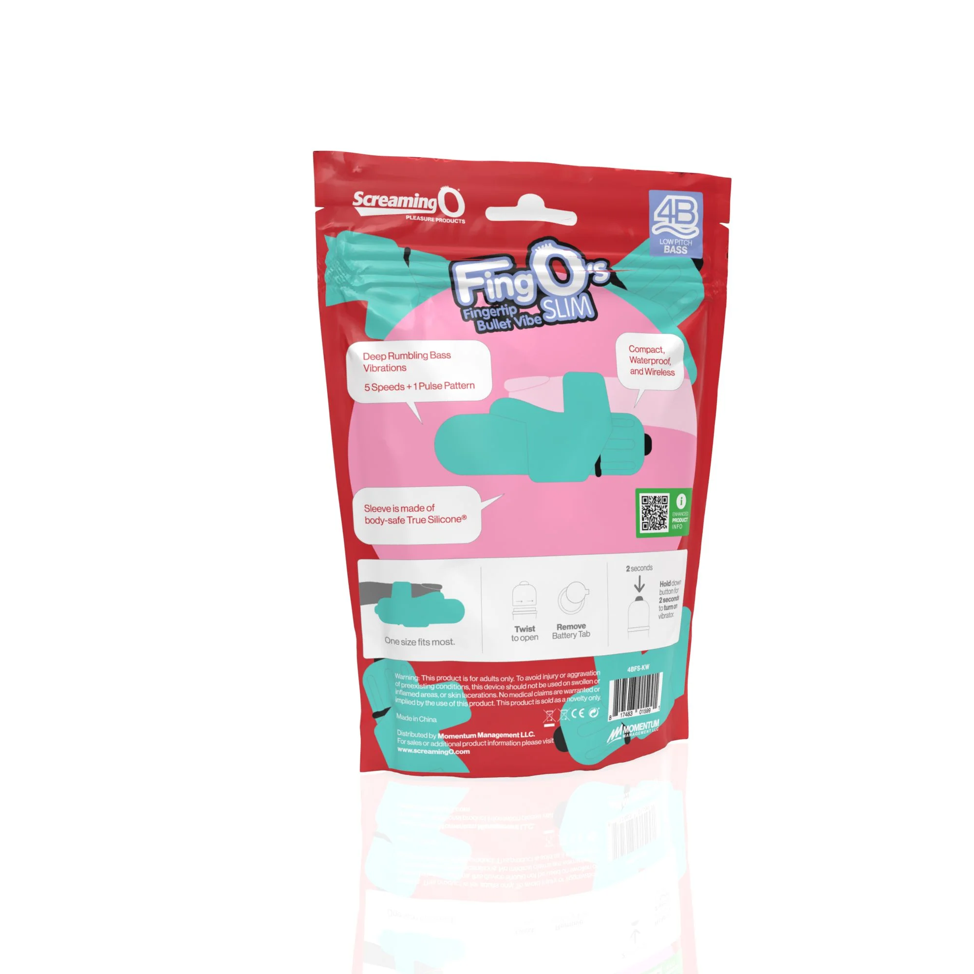 Breng genot binnen handbereik met de 4B FingO Slim, een slanke vinger vibe aangedreven door de nieuwe 4B Bullet! De 4B FingO Slim is uitgerust met een unieke 6-functie motor, biedt krachtige, doordringende vibraties en verandert je vinger in je nieuwe favoriete seksspeeltje - en hij is ook nog eens 100% waterproof! Deze handige mini vibe maakt gebruik van een slanke lichaamsveilige siliconen huls voor nog meer genot met een rekbaar bandje om hem op zijn plaats te houden, waardoor het gemakkelijk is om vibraties te integreren in bijna elke intieme handeling.