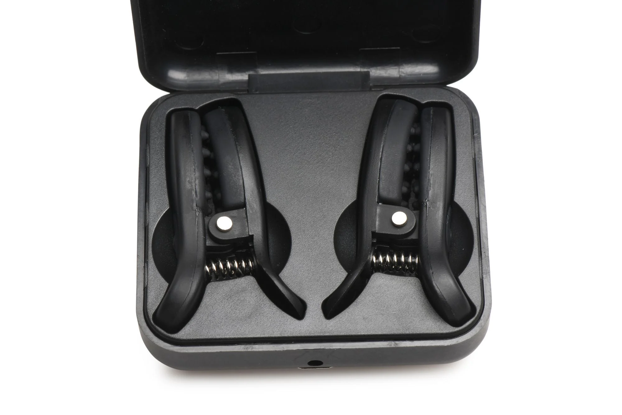 Opladen is heel eenvoudig dankzij het stijlvolle, reisvriendelijke Master Series-doosje, dat je klemmen schoon en gebruiksklaar houdt voor het volgende avontuur. Bovendien past het doosje met de klemmen erin makkelijk in je tas of koffer, zodat je ze discreet kunt meenemen en zelfs in het doosje kunt opladen.