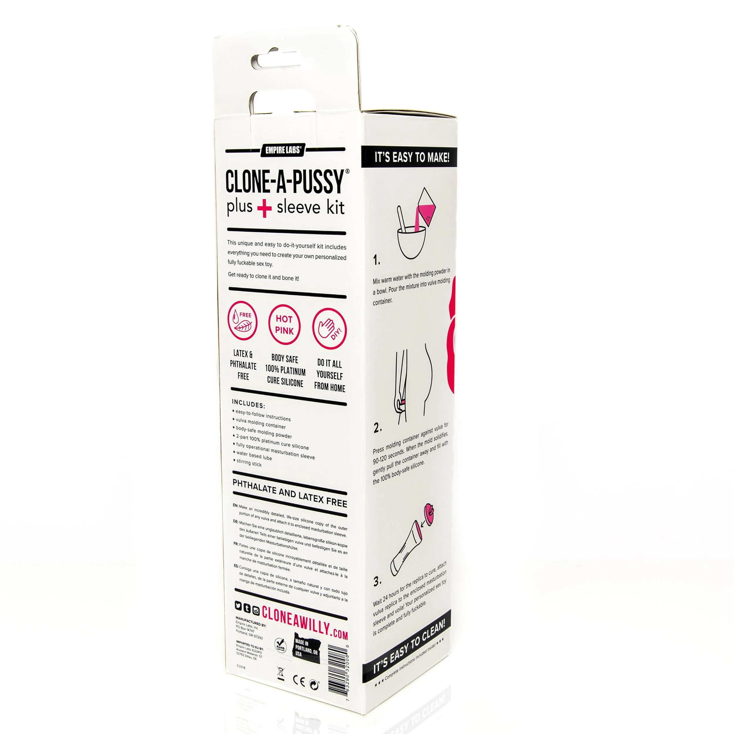 De Clone-A-Pussy+ Plus Sleeve Kit is perfect voor degenen die op zoek zijn naar het ideale cadeau voor vrijgezellenfeesten, Valentijnsdag, jubilea en meer. Elke kit wordt geleverd met alles wat je nodig hebt, inclusief roze siliconen, vormpoeder, sleeve, harde behuizing, op water gebaseerd glijmiddel en gemakkelijk te volgen instructies. Dus wacht niet langer en maak vandaag nog een replica!