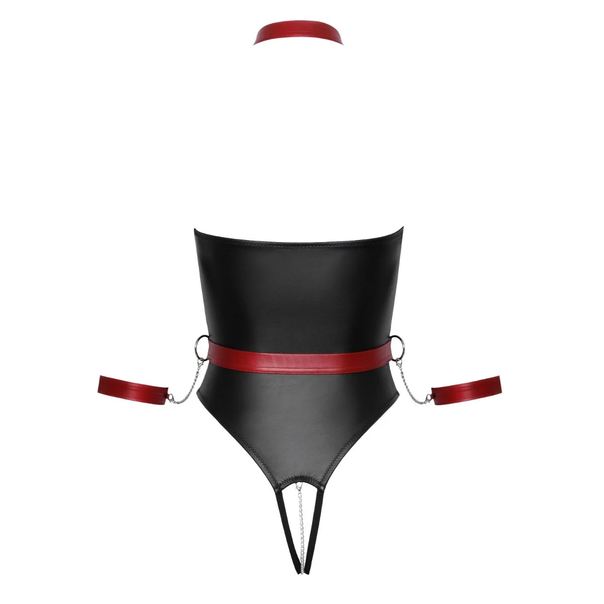 Productinformatie "Cottelli Bondage - Stringbody met Bondage Details - Zwart/Rood"