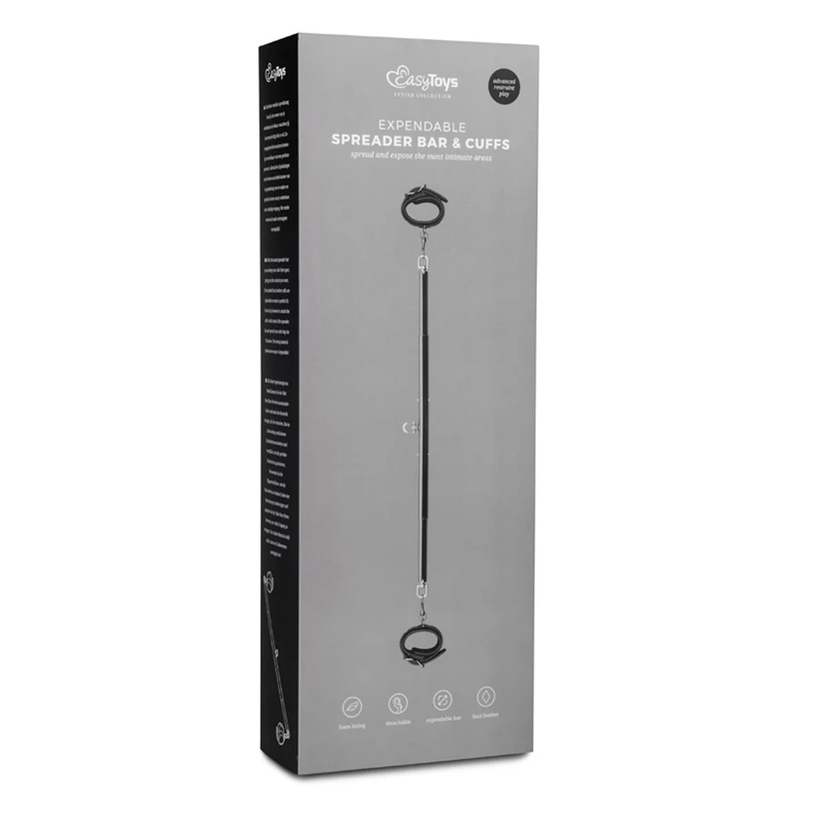 De spreader bar en handboeien komen in een prachtig mooie verpakking aangeleverd en straalt zelfs een knap staaltje luxe uit. De doos waarin de bar en de handboeien liggen is voorzien van stevig zwart karton en heeft zelfs een magnetische sluiting zodat de doos mooi dicht blijft.
