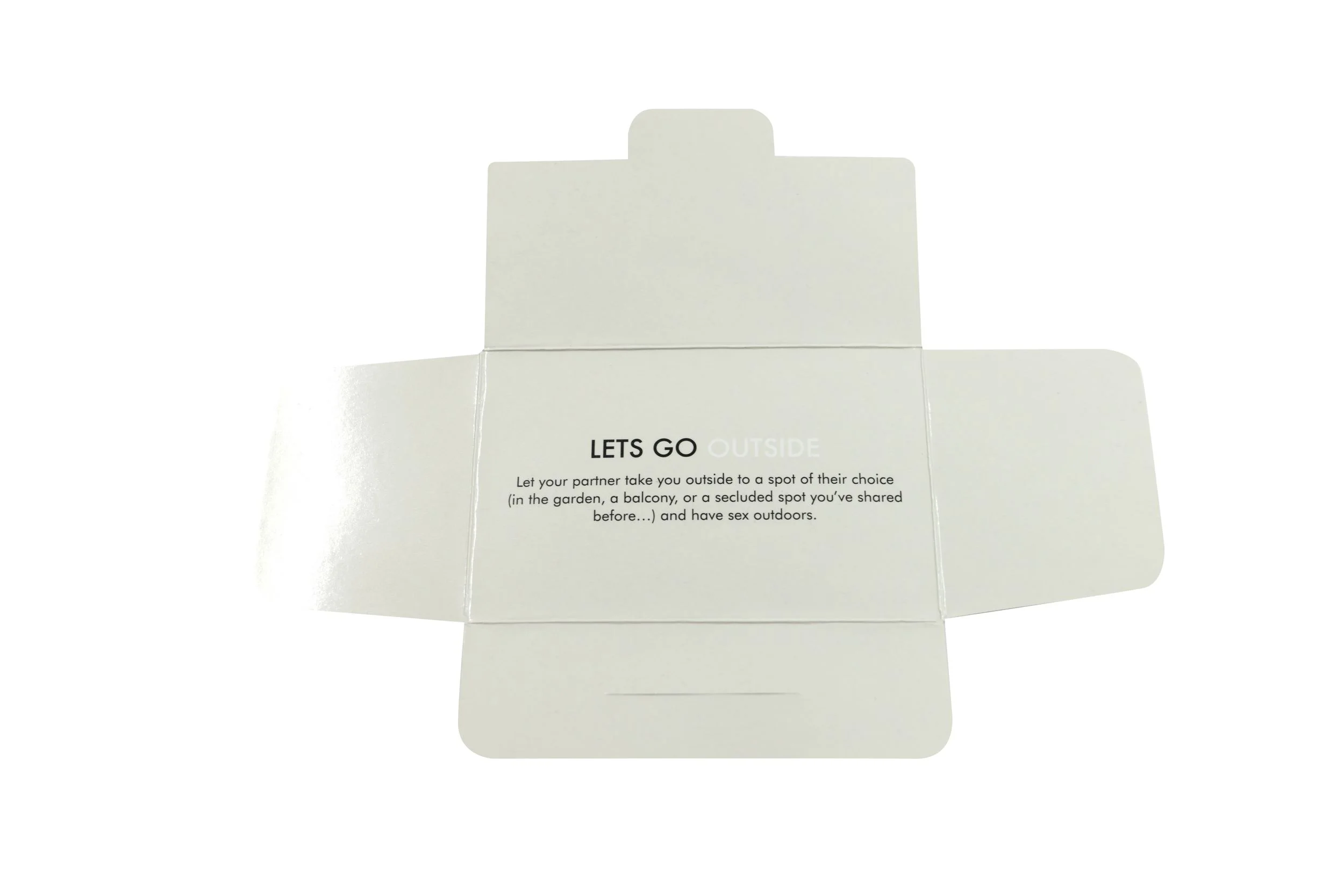 Je kunt het spel spelen volgens de regels, maar net zo goed improviseren: stop een envelop stiekem in je partner’s tas, neem er een paar mee op een weekendje weg of kies willekeurig op een doordeweekse avond.