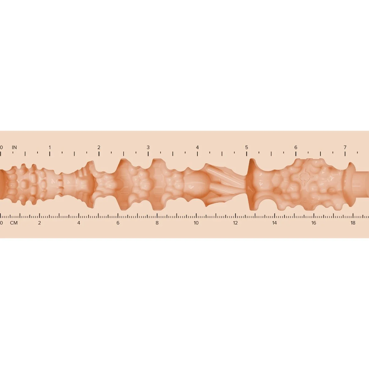De binnenkant is gemaakt van een hoogwaardig, huidachtig materiaal dat zacht en flexibel aanvoelt. Hierdoor vormt de sleeve zich comfortabel rond het lichaam en draagt het bij aan een natuurlijke beleving. De interne patronen zorgen voor een variatie aan sensaties, van subtiele stimulatie tot intensere drukpunten, waardoor het gebruik elke keer anders kan aanvoelen.