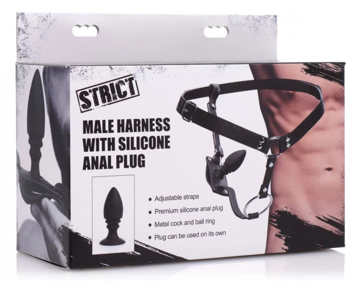 Dit harnas combineert een metalen cockring met een geribbelde siliconen buttplug. Doe de penis en de balzak door de ring om een harde en gevoelige erectie te creëren. Breng de plug in en geniet van een heerlijke anale stimulatie. De heupband is verstelbare voor een goede pasvorm. De plug kan ook los gebruikt worden. Gebruik de plug met een anaal glijmiddel op waterbasis en reinig hem na gebruik met water en een toycleaner.