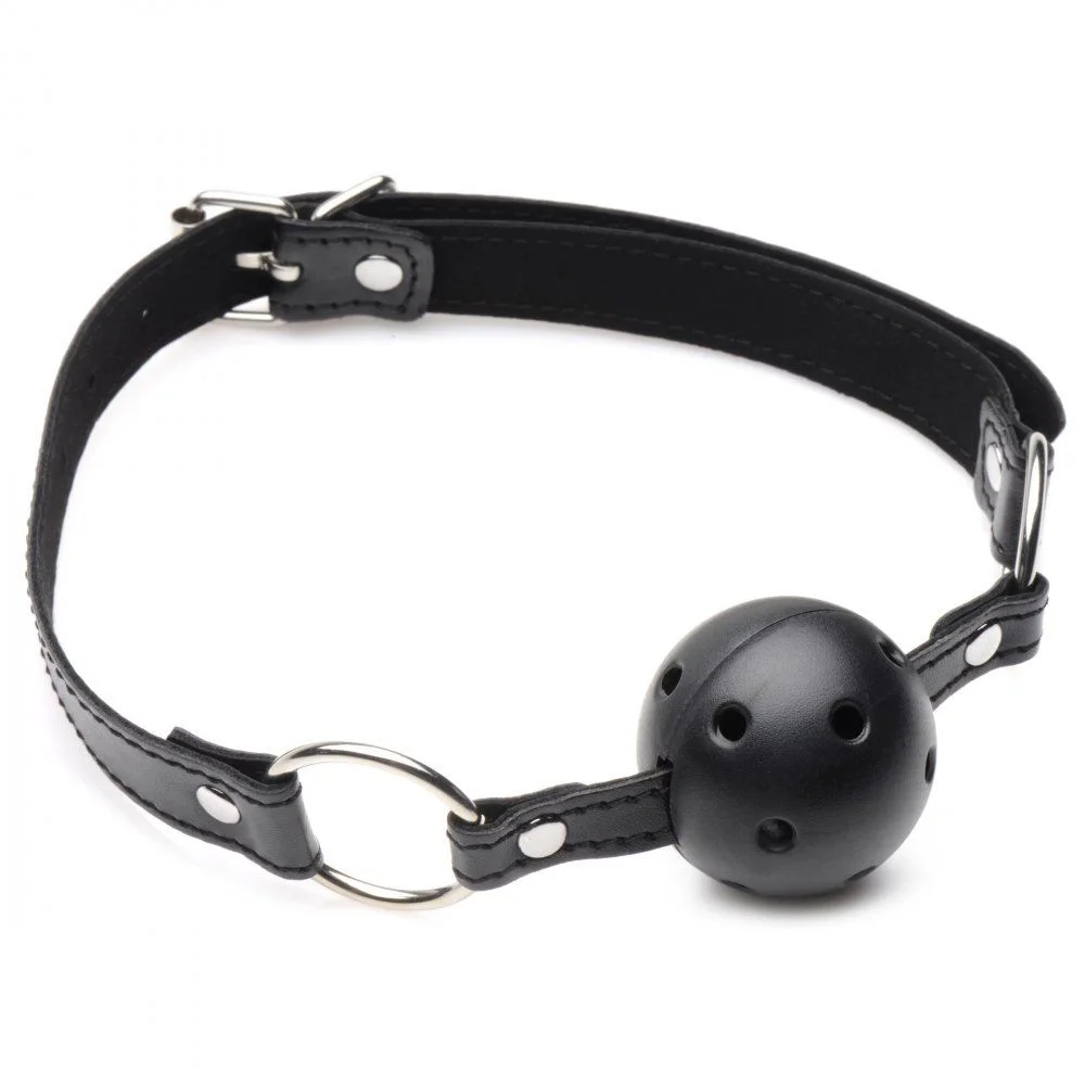 BALL GAG: Lengte: 63,5 cm, verstelbaar van 40,6 cm tot 58 cm, diameter bal 4,5 cm.