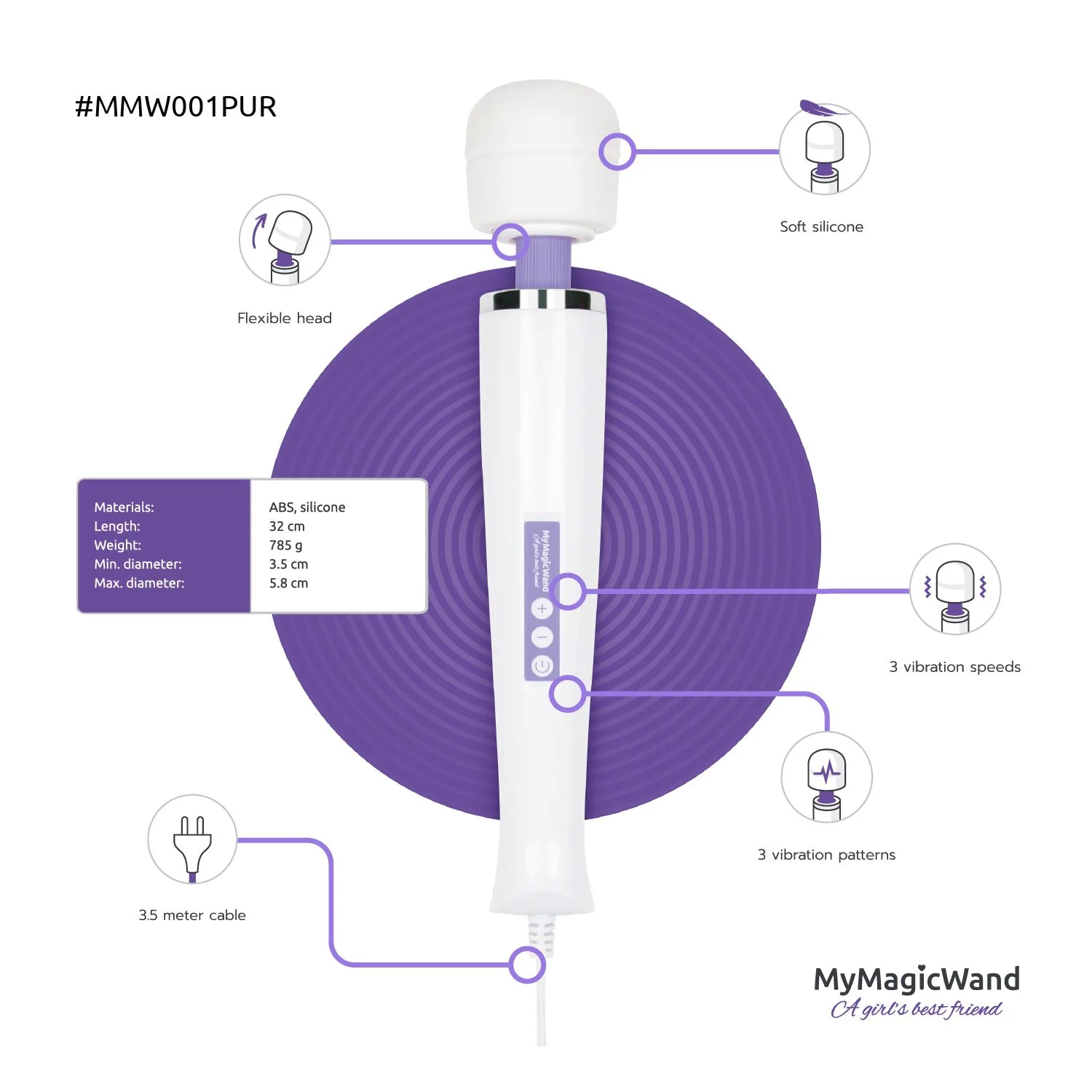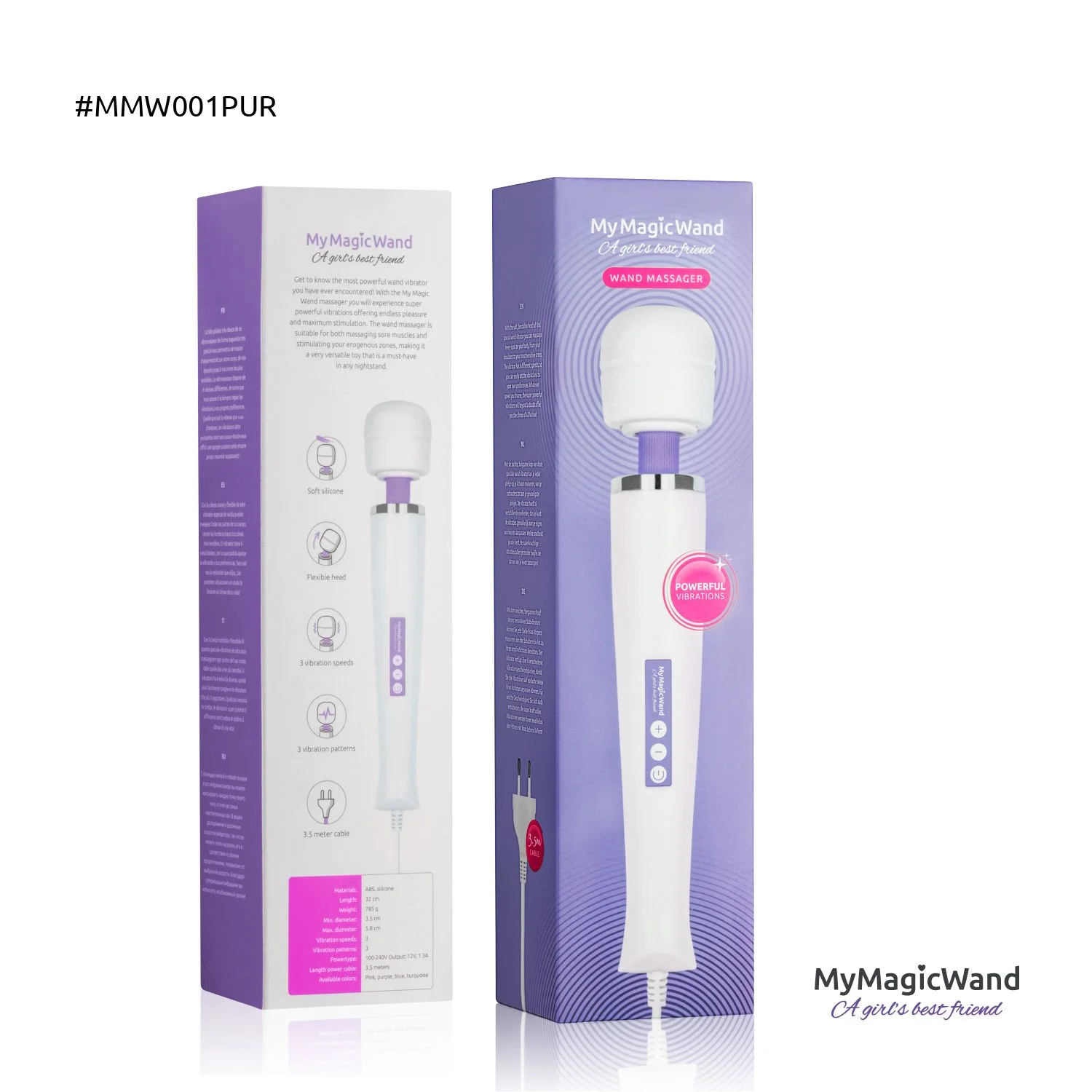 De MyMagicWand is voorzien van een extra lang snoer met een vaste stekker. Hierdoor levert de wand vibrator ongekend diepe vibraties. Daarnaast zijn er nooit problemen met een lege accu, lege batterijen of een afstandsbediening die niet optimaal werkt. Door simpelweg de stekker in het stopcontact te pluggen, is deze krachtige vibrator helemaal klaar voor actie. Tijd speelt hierbij geen rol. De MyMagicWand kan eindeloos doorgaan en hoeft niet te worden opgeladen.