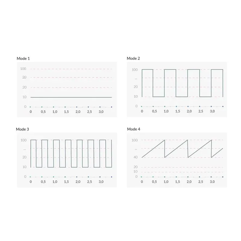 5 E-stim programma's met 10 intensiteitsniveaus