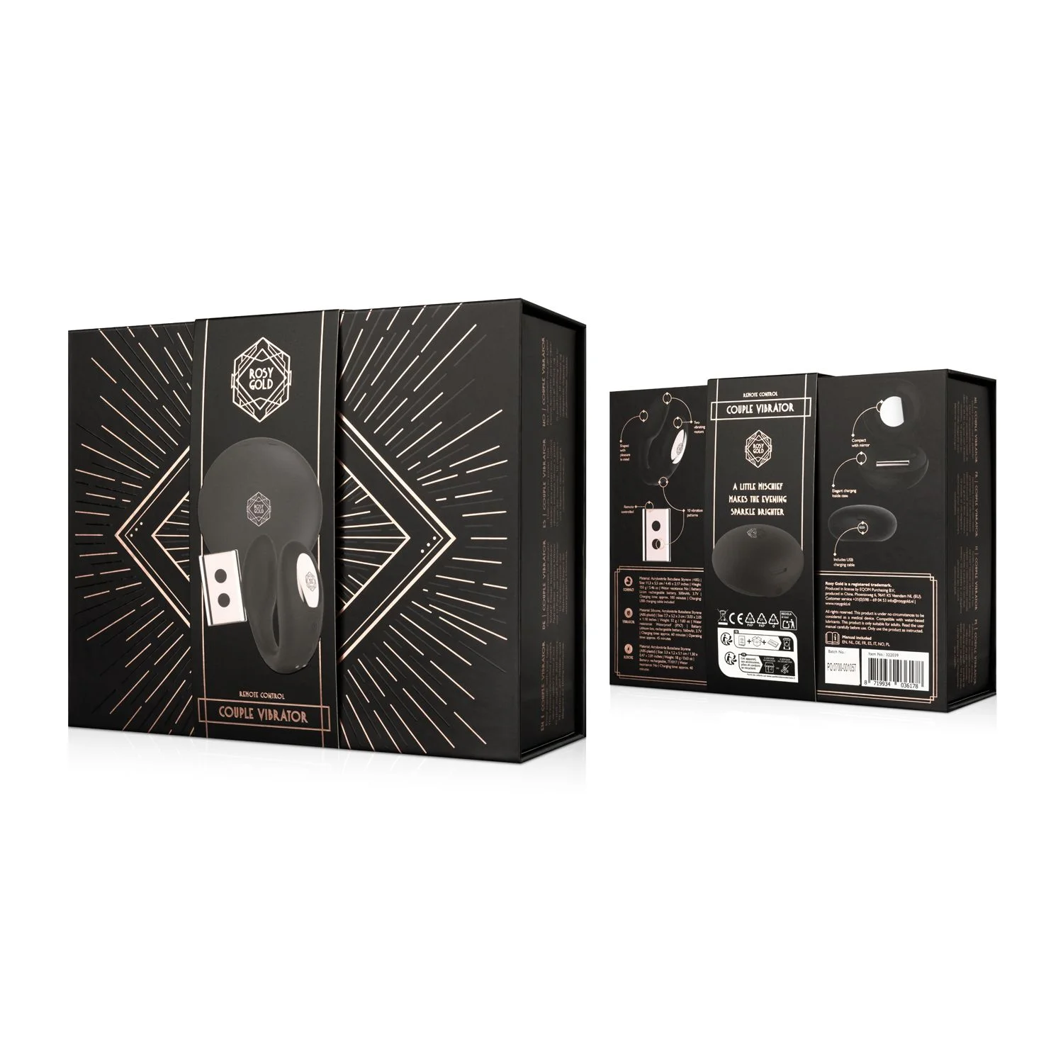 Productinformatie "Rosy Gold – C-Shape Vibrator met Luxe Oplaadcase – Zwart"