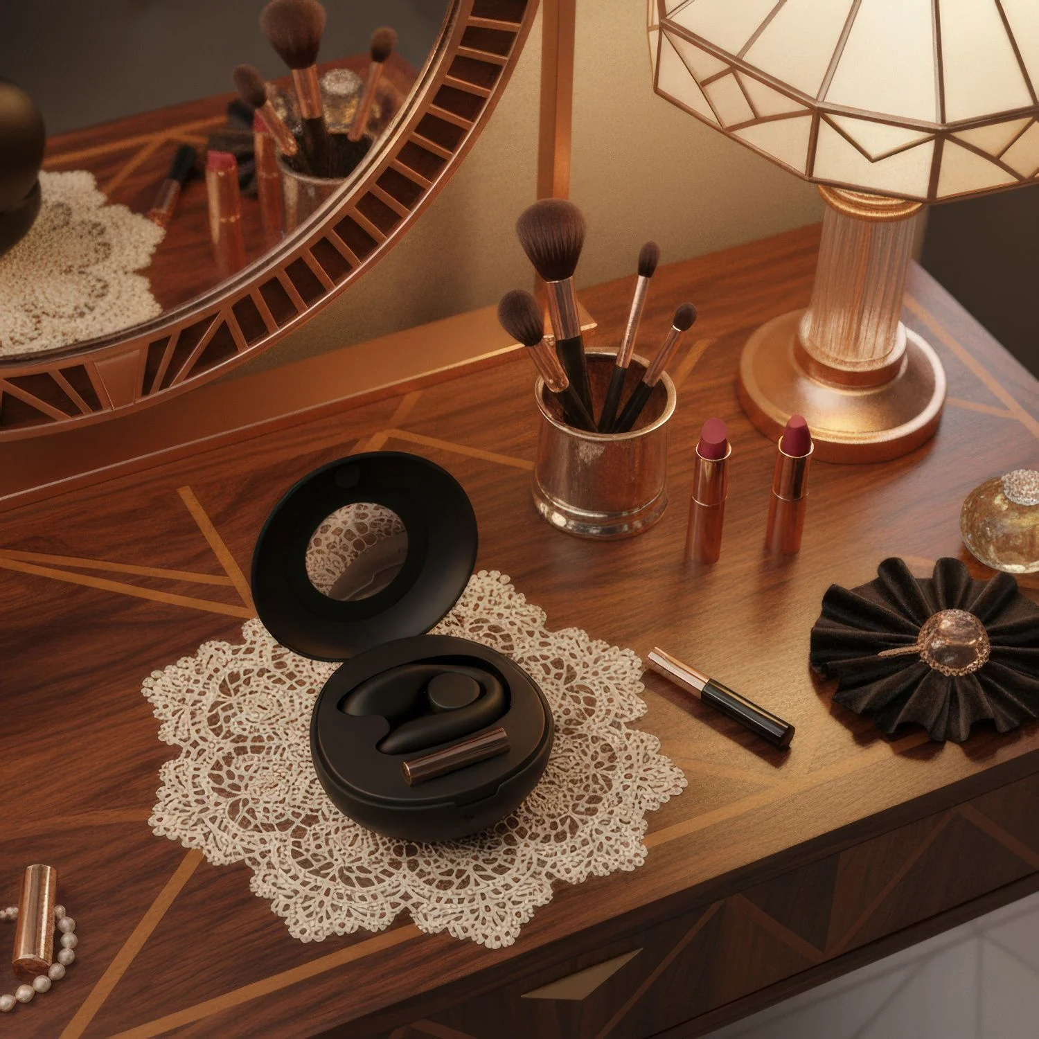 Een belangrijk pluspunt is de luxe oplaad- en opbergcase, die functionaliteit en stijl samenbrengt. Deze case beschermt de vibrator, houdt hem hygiënisch opgeborgen en zorgt ervoor dat hij altijd klaar is voor gebruik. De geïntegreerde spiegel voegt een praktisch en verfijnd detail toe, ideaal voor zowel thuis als onderweg.
