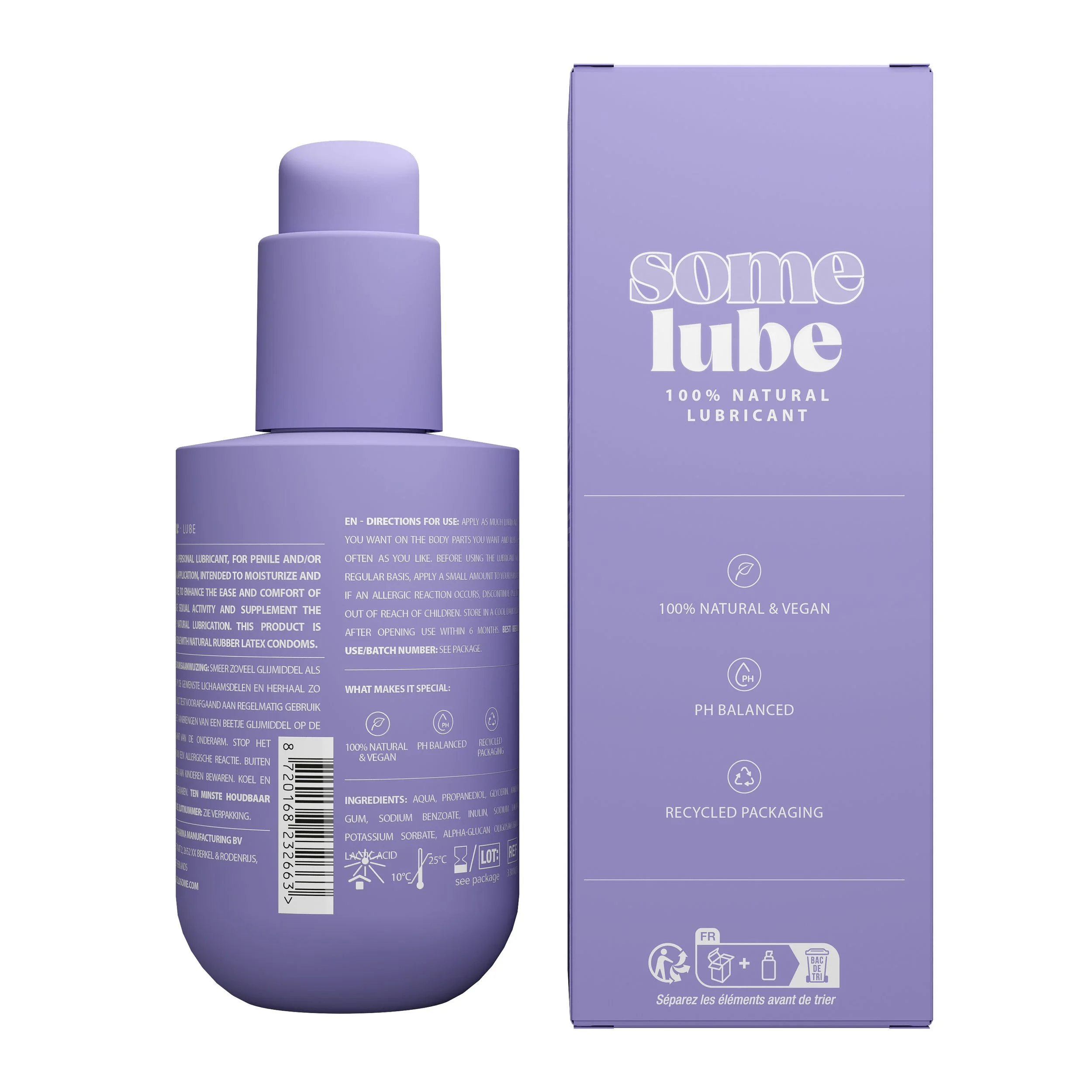 SOME Natural glijmiddel is speciaal ontworpen om het gemak en comfort te verbeteren bij intieme seksuele activiteiten. De 100% natuurlijke formule vult de natuurlijke lubricatie van het lichaam aan en is compatibel met condooms van natuurlijk rubberlatex. Dit Vegan glijmiddel zorgt voor een zacht gevoel en is pH-gebalanceerd. SOME Natural is perfect voor iedereen die op zoek is naar een natuurlijke oplossing en om het plezier tijdens intimiteit te vergroten.
