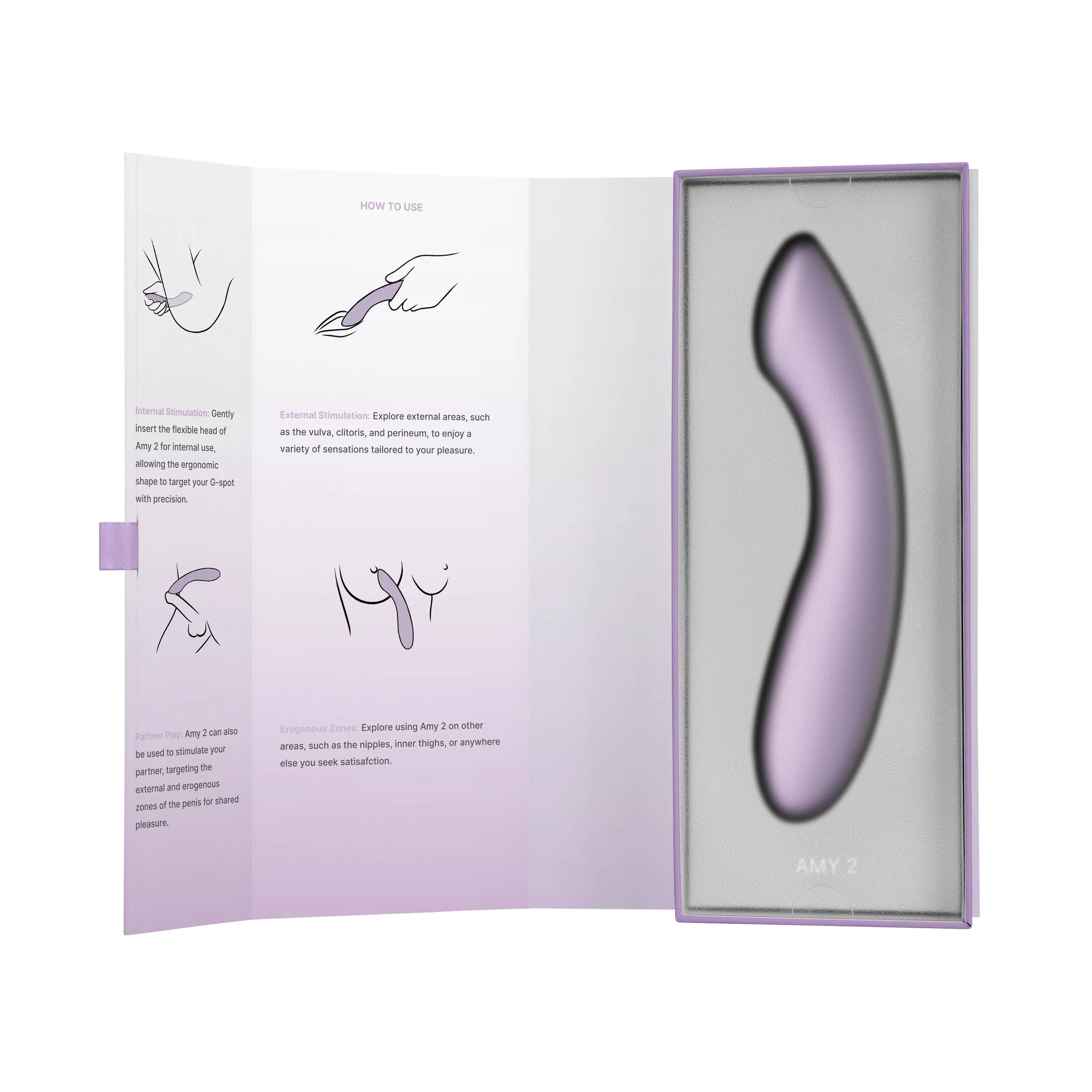Geniet van 5 heerlijke vibratiestanden en 5 intensiteit levels met een simpele druk op de knop. De Amy 2 gaat tot wel 120 minuten mee bij een volle accu en wordt geleverd met USB-kabel en handige toybag voor stofvrij opbergen. Reinig na gebruik met lauwwarm water en een toycleaner.