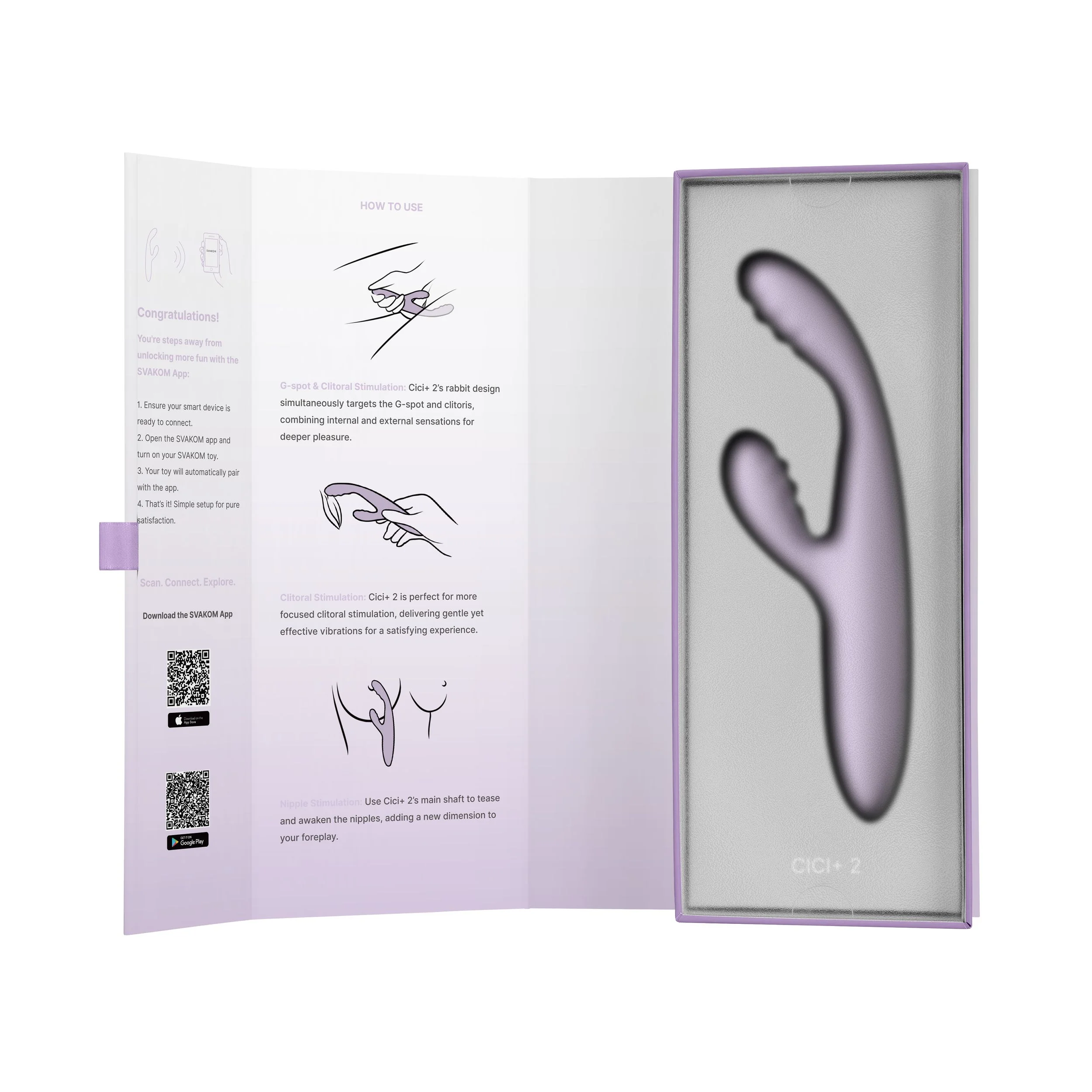 App-besturing: Personaliseer je ervaring via de app, speel op afstand met een partner, of synchroniseer met interactieve content. De Cici+ 2 brengt je fantasieën binnen handbereik.