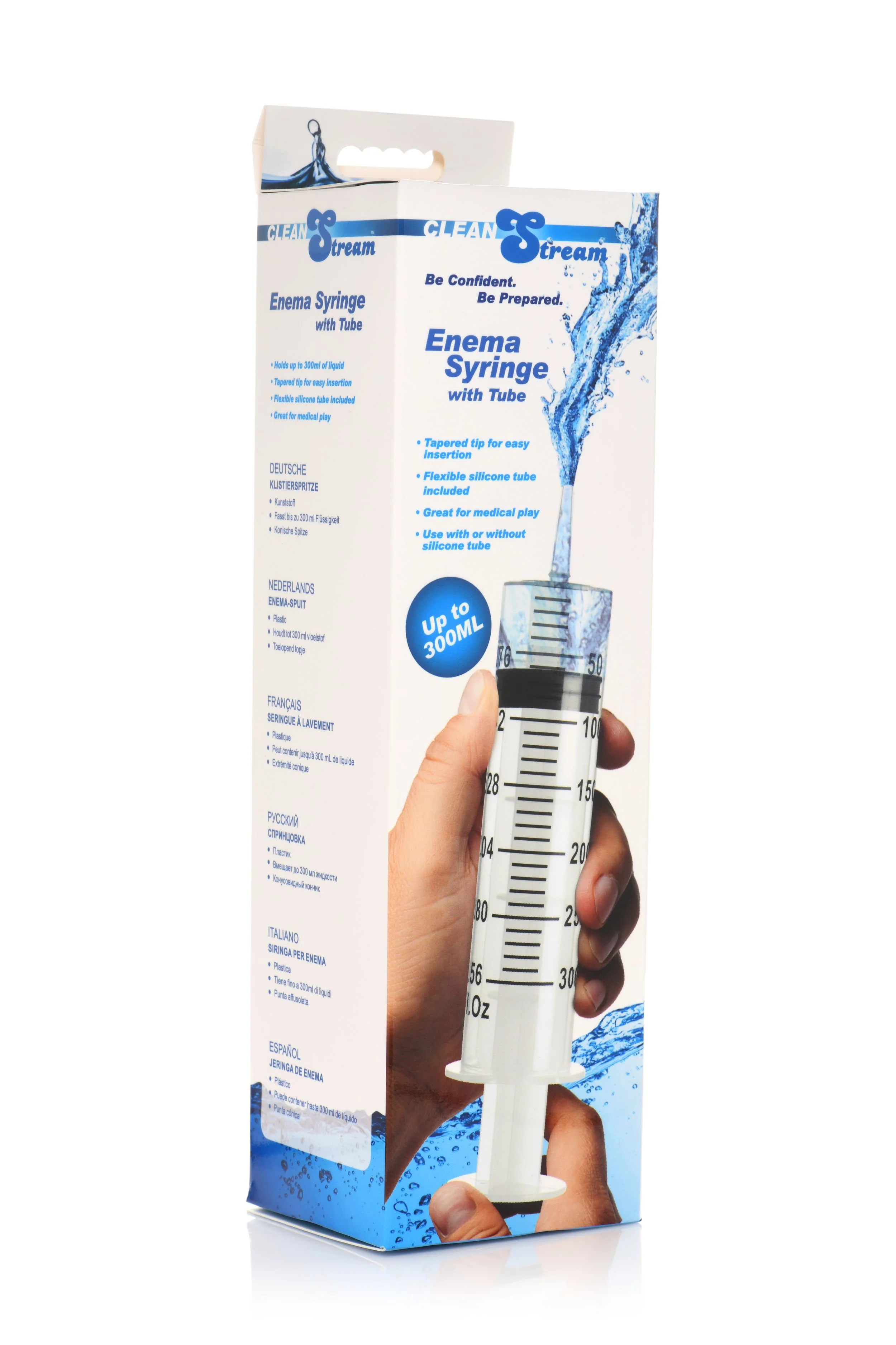 Deze spuit kan tot 300 ml vloeistof bevatten en is zeer gemakkelijk te gebruiken. Het heeft een uitschuifbare buis aan het uiteinde, 41 cm lang en 1 cm breed, die wordt gebruikt om diepere gebieden te bereiken. Perfect voor rollenspel en intieme reiniging. Alleen gebruiken met glijmiddel op waterbasis.