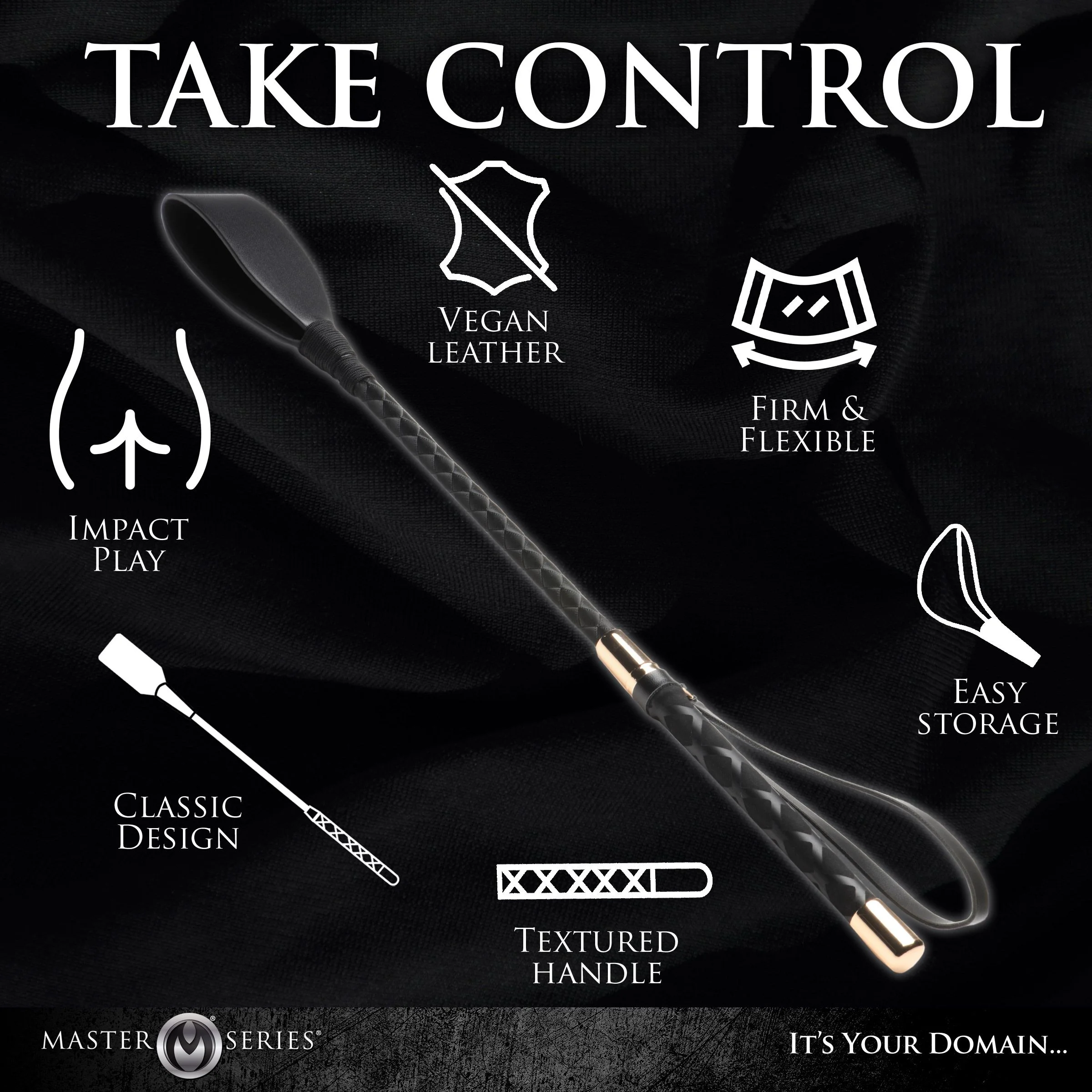 Deze rijzweep is gemaakt van hoogwaardig veganistisch leer. Met een stevige grip kun je de intensiteit van elke tik precies regelen, zodat je de sensaties kunt aanpassen aan je wensen en verlangens. Met de lus berg je hem na gebruik eenvoudig weer op.