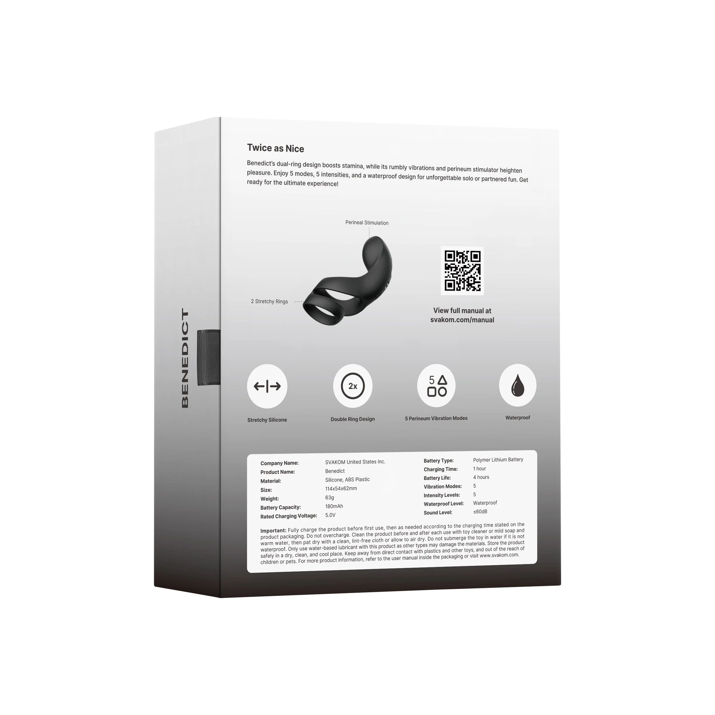 Benedict is niet alleen geweldig voor solo-sessies, maar komt pas echt tot zijn recht in gezelschap. Het vertraagt je climax, waardoor je langer kunt genieten, terwijl het je blijft bombarderen met plezier. Benedict weet precies hoe hij jou en je partner tevreden moet stellen.