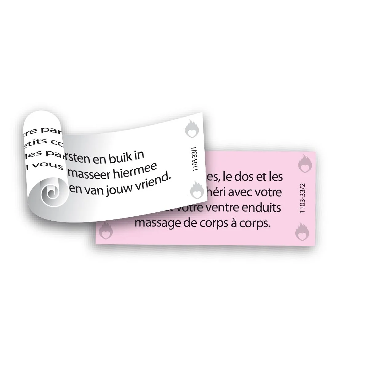 In het hartvormige doosje vind je 100 rolletjes: 50 roze met opdrachten voor haar en 50 witte met opdrachten voor hem. Elke opdracht is teder, intiem of vurig en brengt meer passie en plezier in de relatie. Met twee opdrachten per week geniet je bijna een jaar lang van spannende uitdagingen en intieme verkenningen.