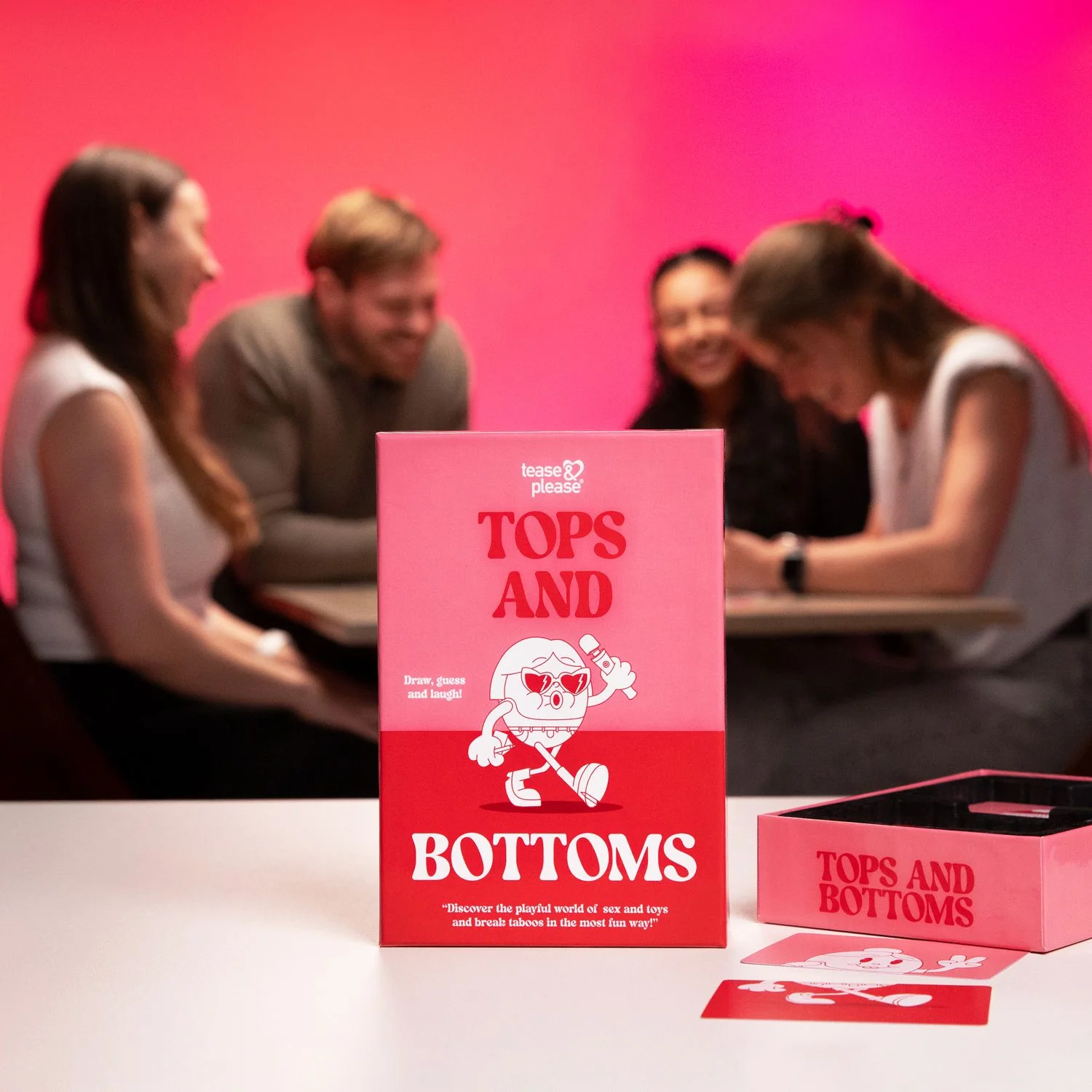 Tops & Bottoms is het ondeugende partyspel dat Pictionary een pikante twist geeft! Of je nu een feestje geeft, een gezellige avond met vrienden hebt of gewoon zin hebt om te lachen – dit spel breekt gegarandeerd het ijs én de taboes.