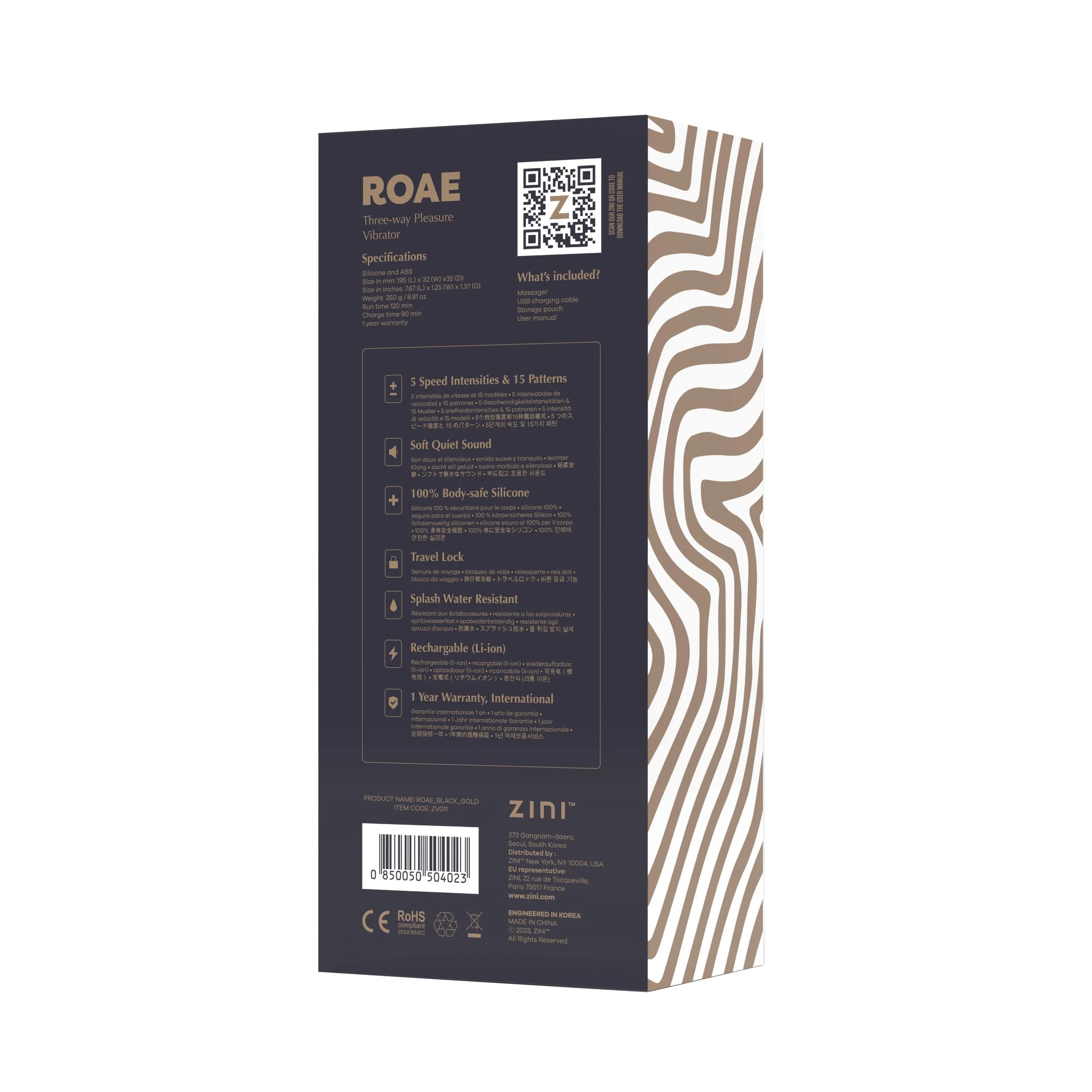 Roae is de verpersoonlijking van luxe, ontworpen met veiligheid in het achterhoofd, gemaakt van 100% lichaamsveilige siliconen en ABS-materialen. Activeer de reisvergrendeling voor zorgeloze momenten, je perfecte metgezel op elk avontuur. Spatwaterbestendig, Roae nodigt uit tot verkenning onder de douche of in de sauna, en versterkt sensuele ervaringen. Omarm kracht en precisie met het elegante ontwerp van Roae, een deur naar ongeëvenaard genot en een wereld van heerlijke sensaties.